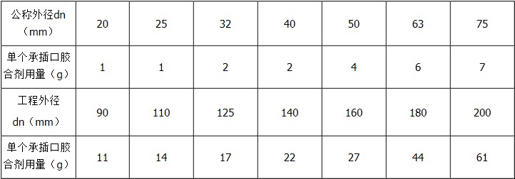 PVC管材胶合剂参考用量