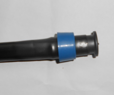 安装方法:1.将滴灌带末端用剪刀剪平整,套在管件蓝色拉环与黑色部分之间。