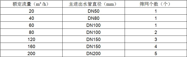 其中“直径DN50mm”表示网式过滤器主进出水管直径50mm,“单网”表示使用一个网式过滤器。